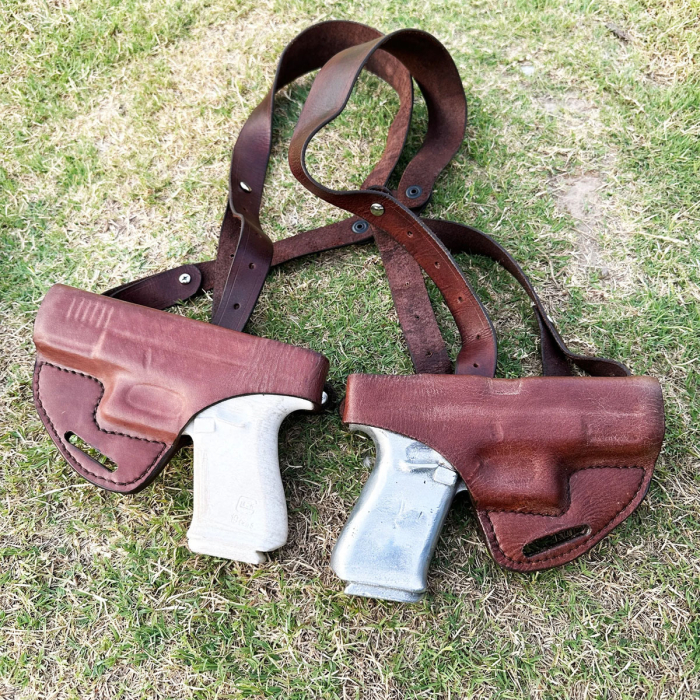Brown Leather Horizontal Double Shoulder Holster – Open-Top, OWB Convertible